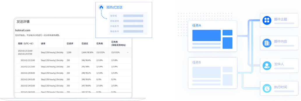 目前客户每月发送近10亿通知及个性化等内容邮件,送达率高达99.5%以上,打开率稳定在10%,在发送业务快速增长基础上,保证了用户有效转化。