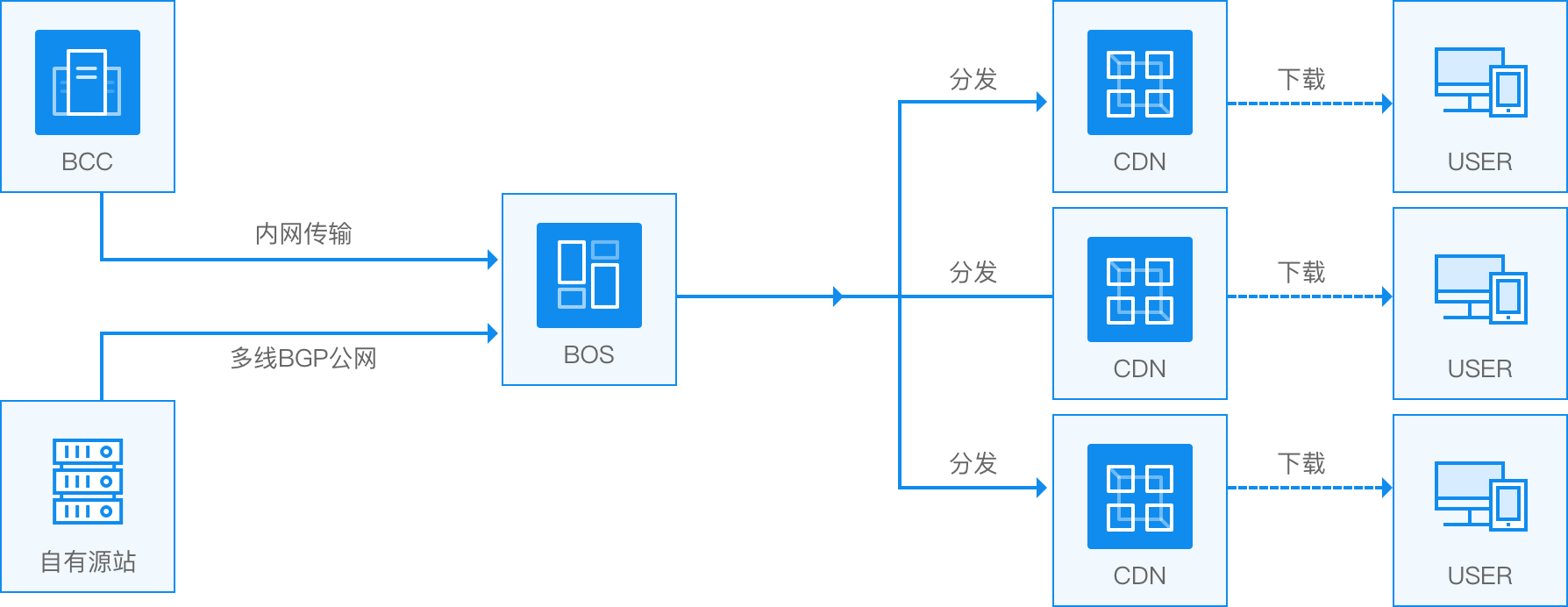 百度智能云CDN支持不同粒度文件全国分发加速,解决了在线游戏、音乐、视频、软件等大型文件传输慢及传输不稳定的问题。