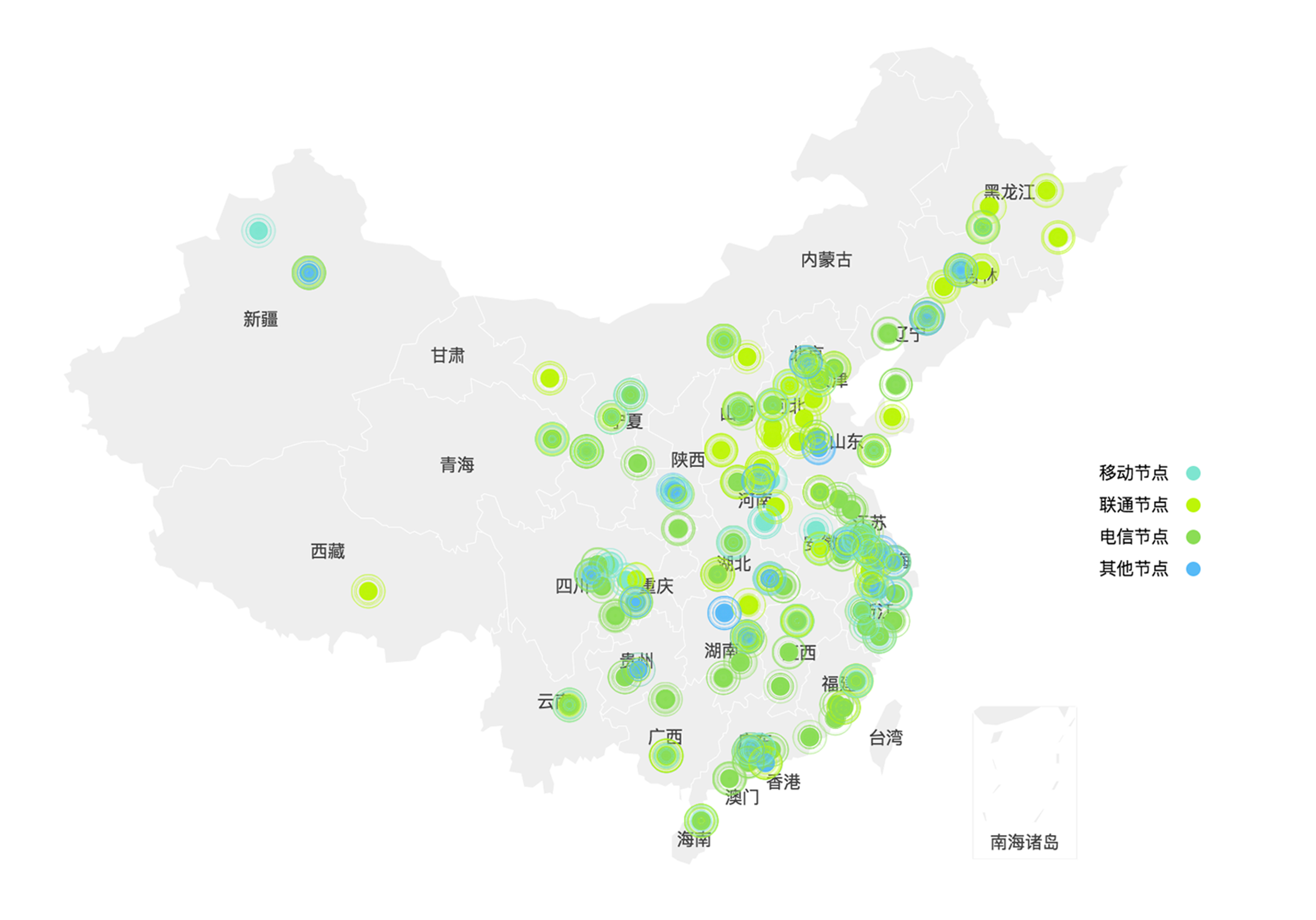 目前百度智能云CDN支持国内节点1000+个,线路接入电信、联通、移动、广电、铁通、鹏博士、华数、BGP等网络,覆盖全国30多个省市,为用户提供可靠的服务。了解更多百度智能云CDN国内节点信息>